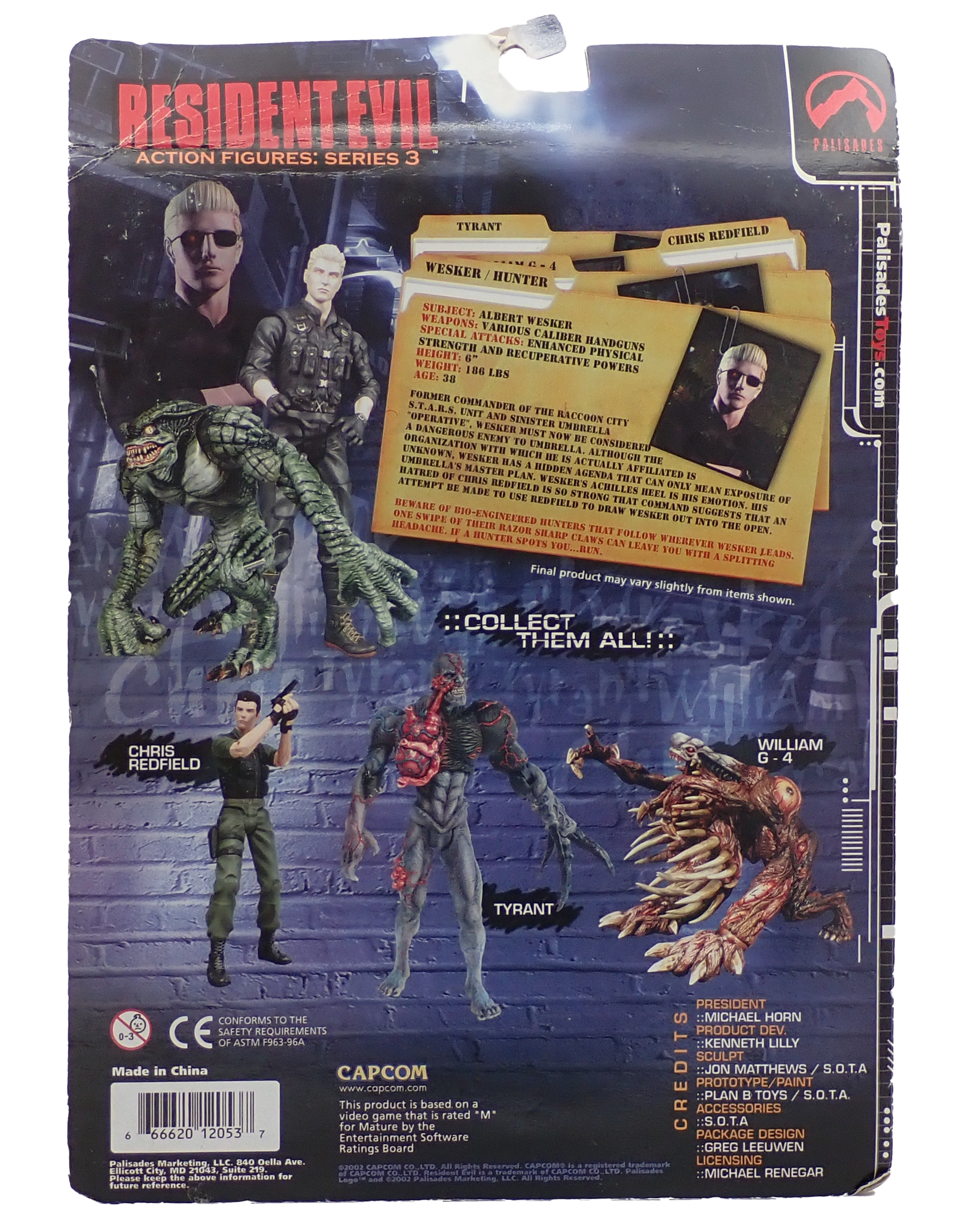Albert Wesker & Hunter ɑ with Sunglasses Head from Resident Evil: CODE: Veronica. Produced by Palisades as part of the third series of Resident Evil "Action" figure.