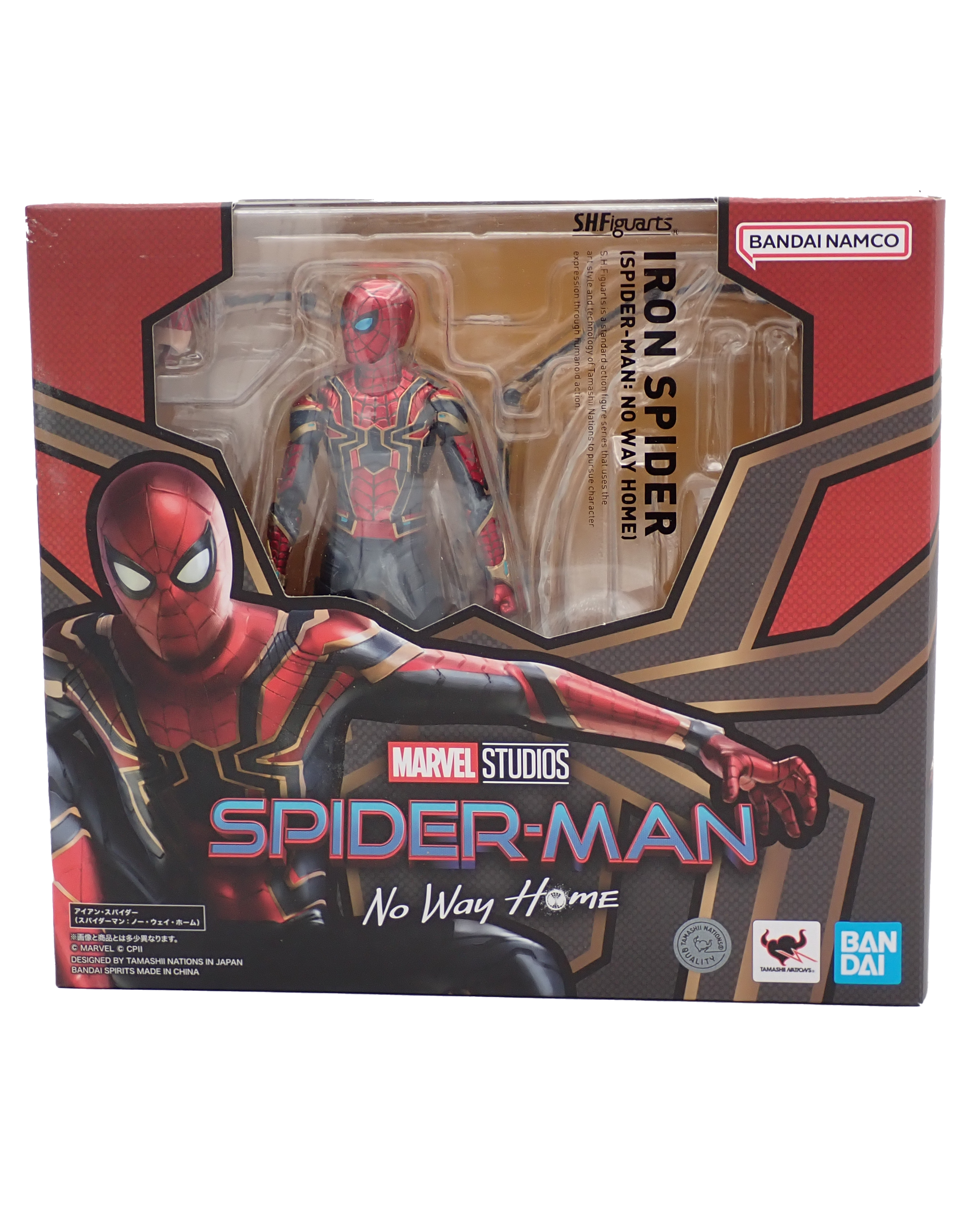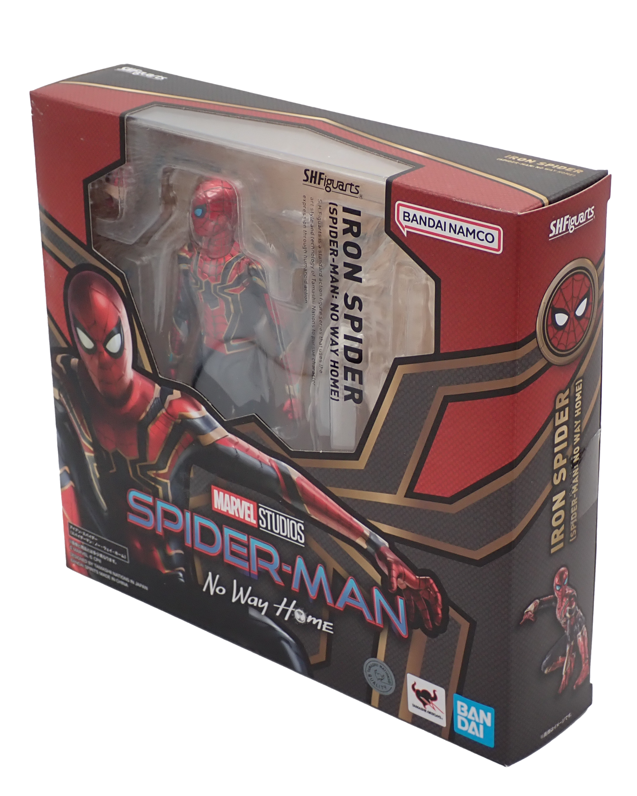 Boxed figure of the Iron Spider as he appears in Spider-Man No Way Home, produced by S.H.Figuarts.