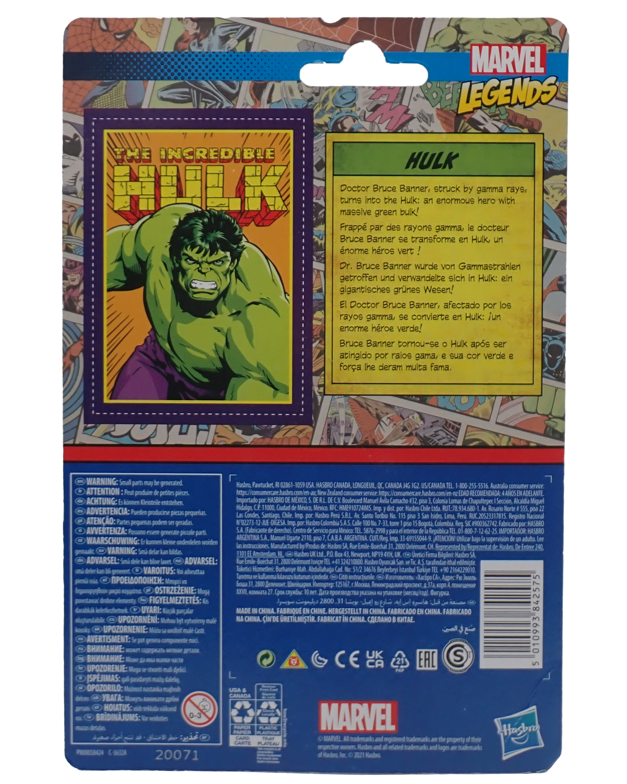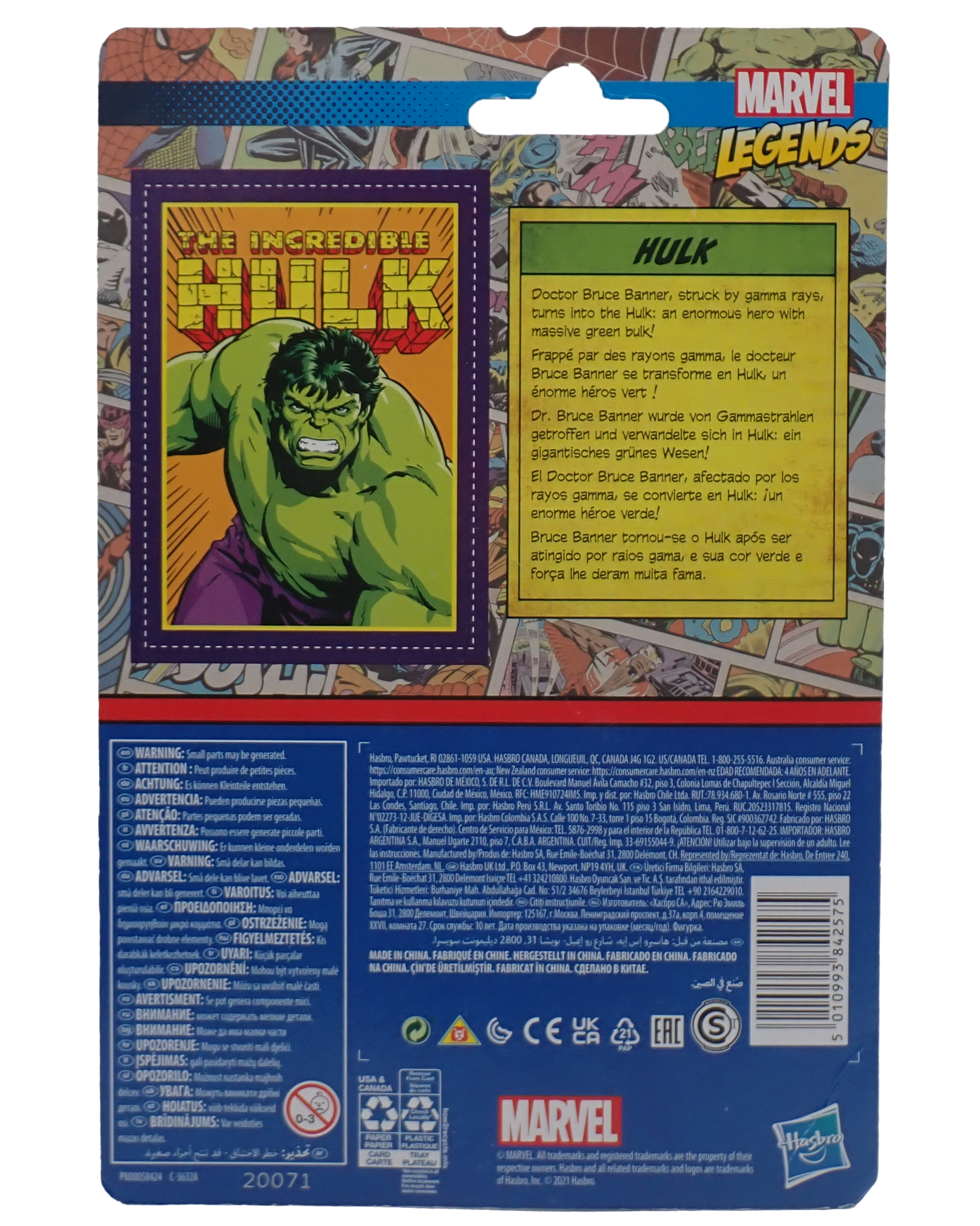 Sealed in box retro figure of The Incredible Hulk as part of Marvel Legends, produced by Kenner in 2021.