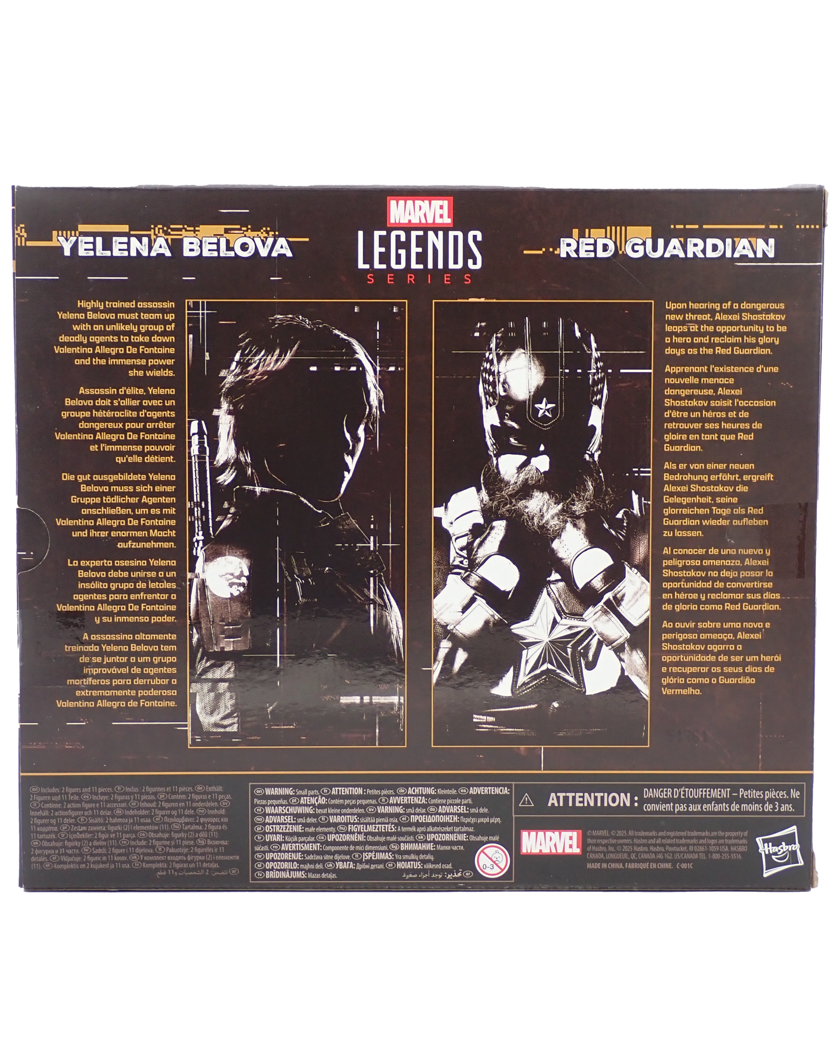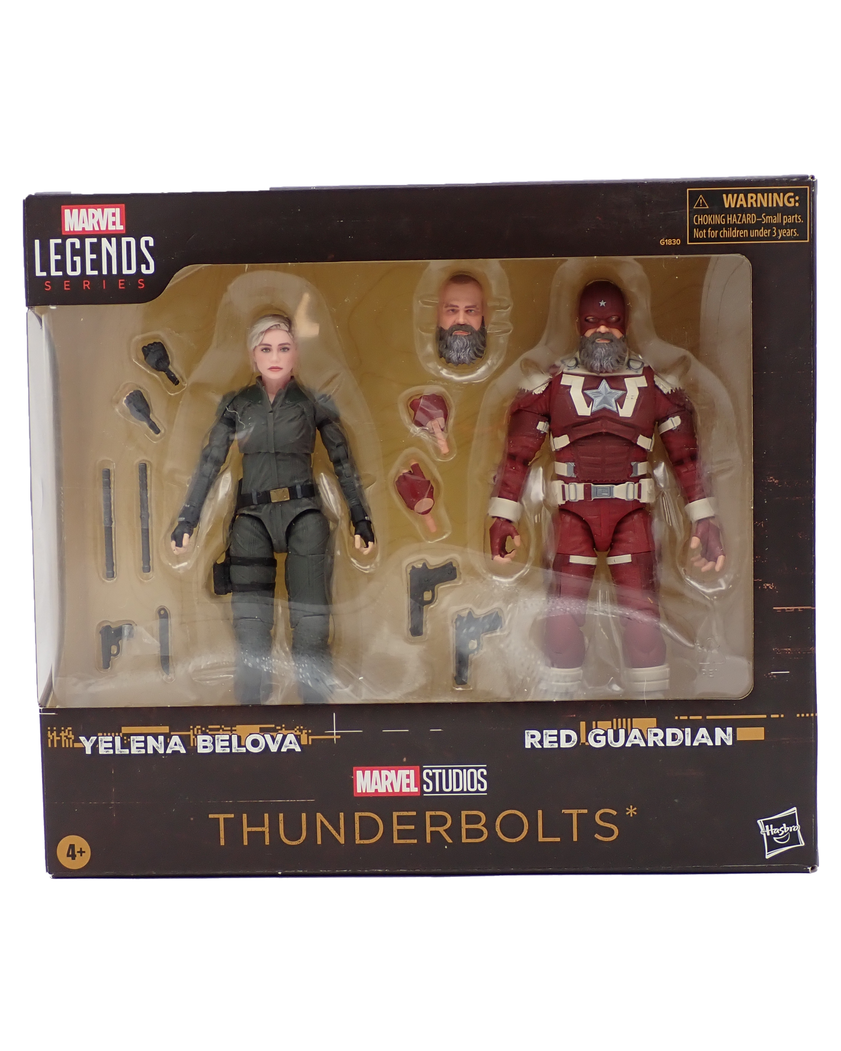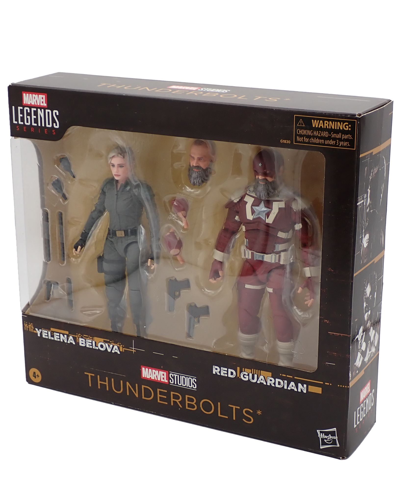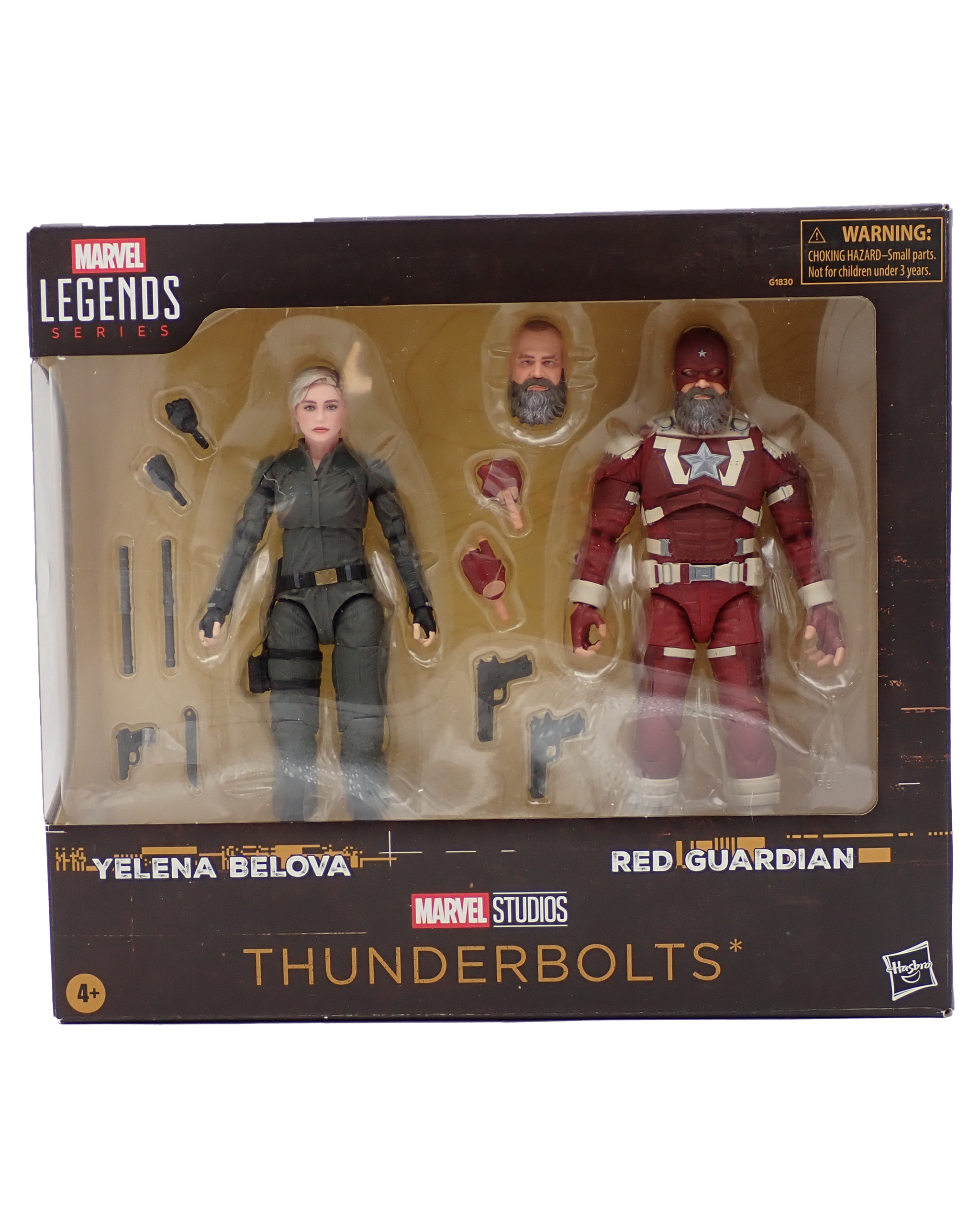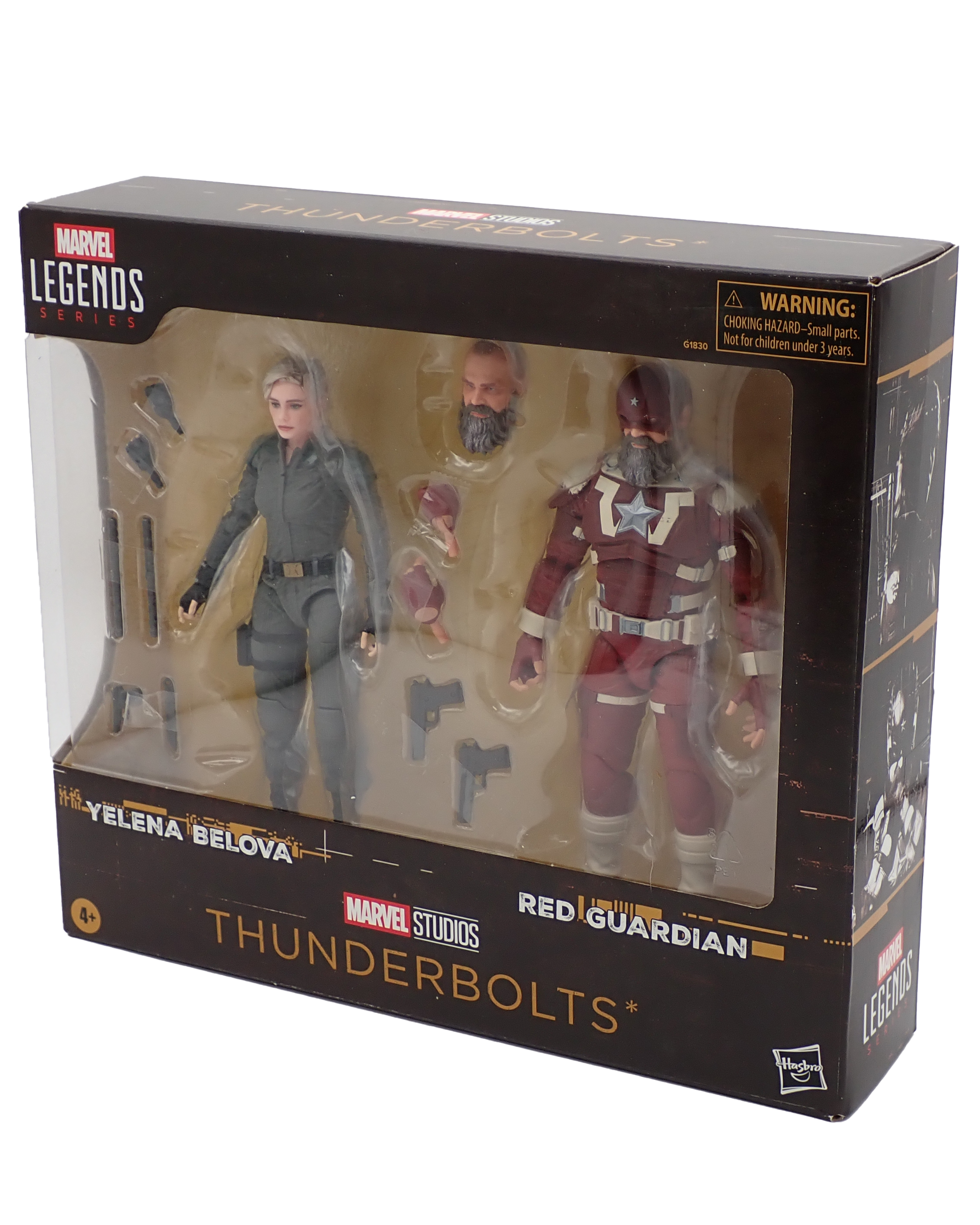 Sealed in box figures of Yelena Velova & Red Guardian as they appear in Thunderbolts.