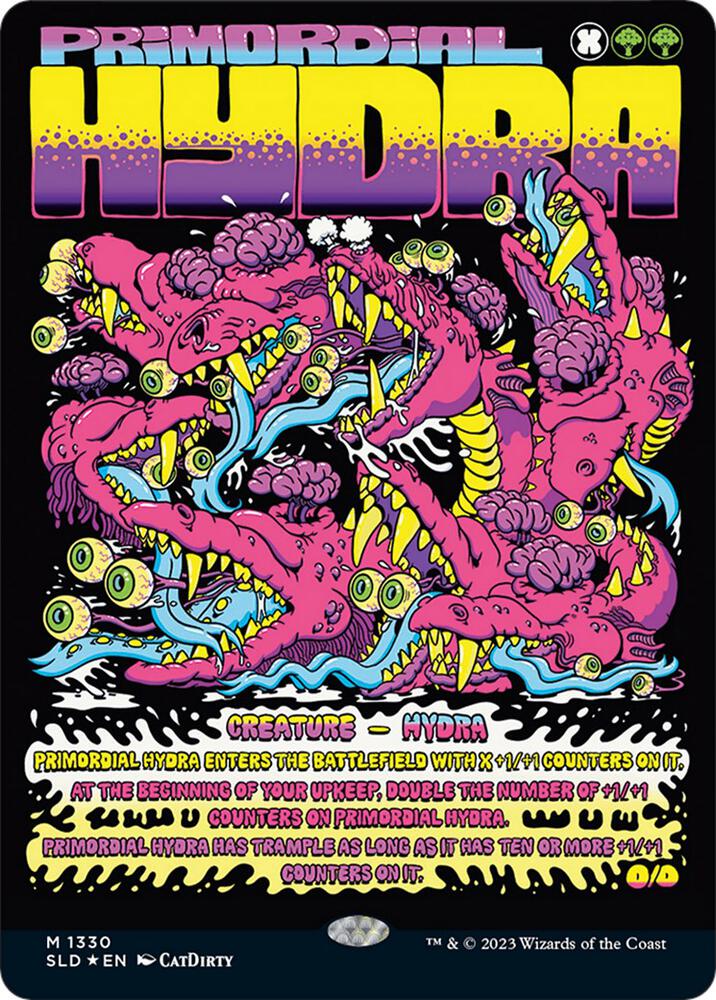 Primordial Hydra enters the battlefield with X +1/+1 counters on it.