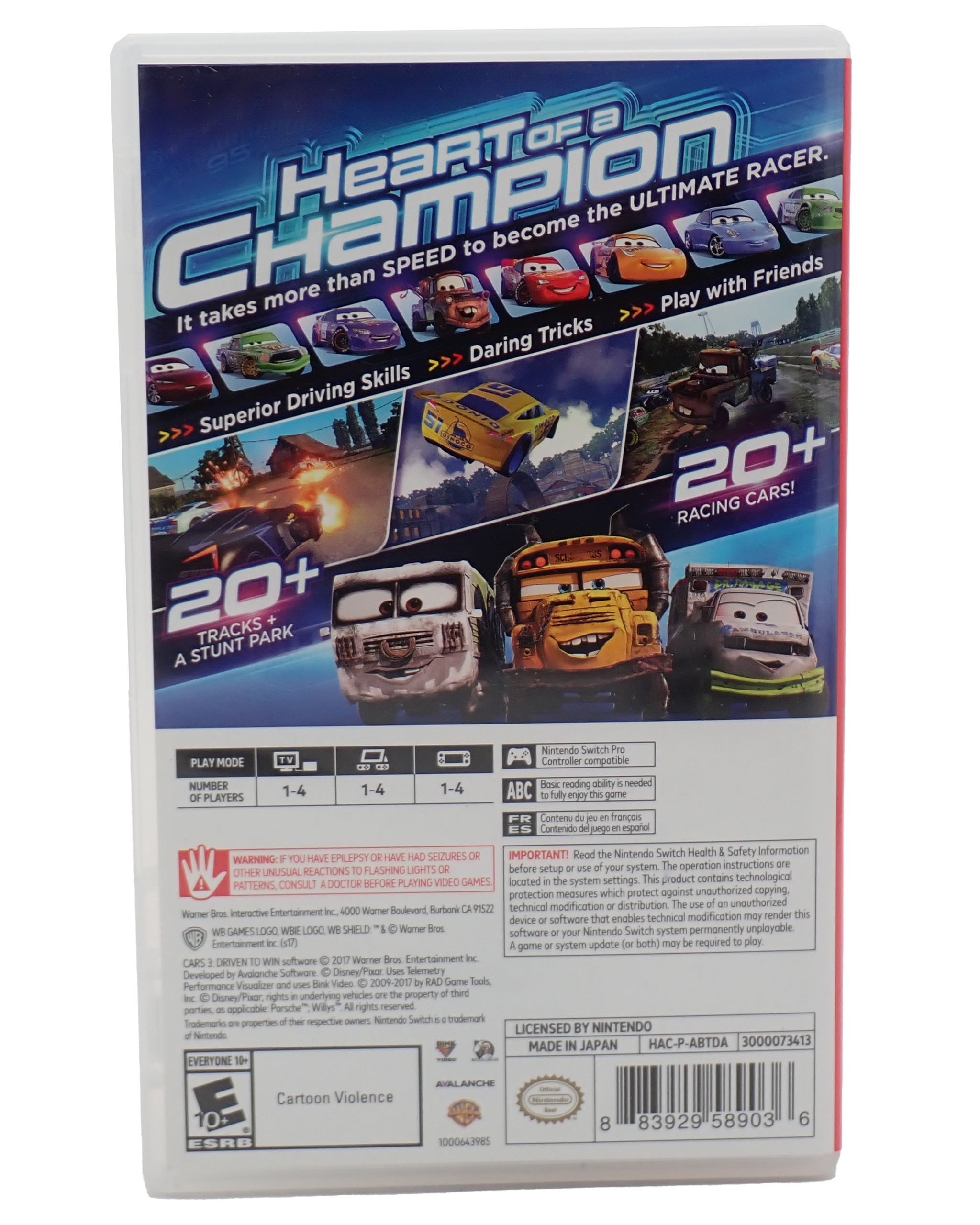 Cars 3: Driven to Win for Nintendo SwitchDeveloped by Avalanche SoftwareReleased in 2017Rated E10+ for Everyone 10+ (Cartoon Violence)