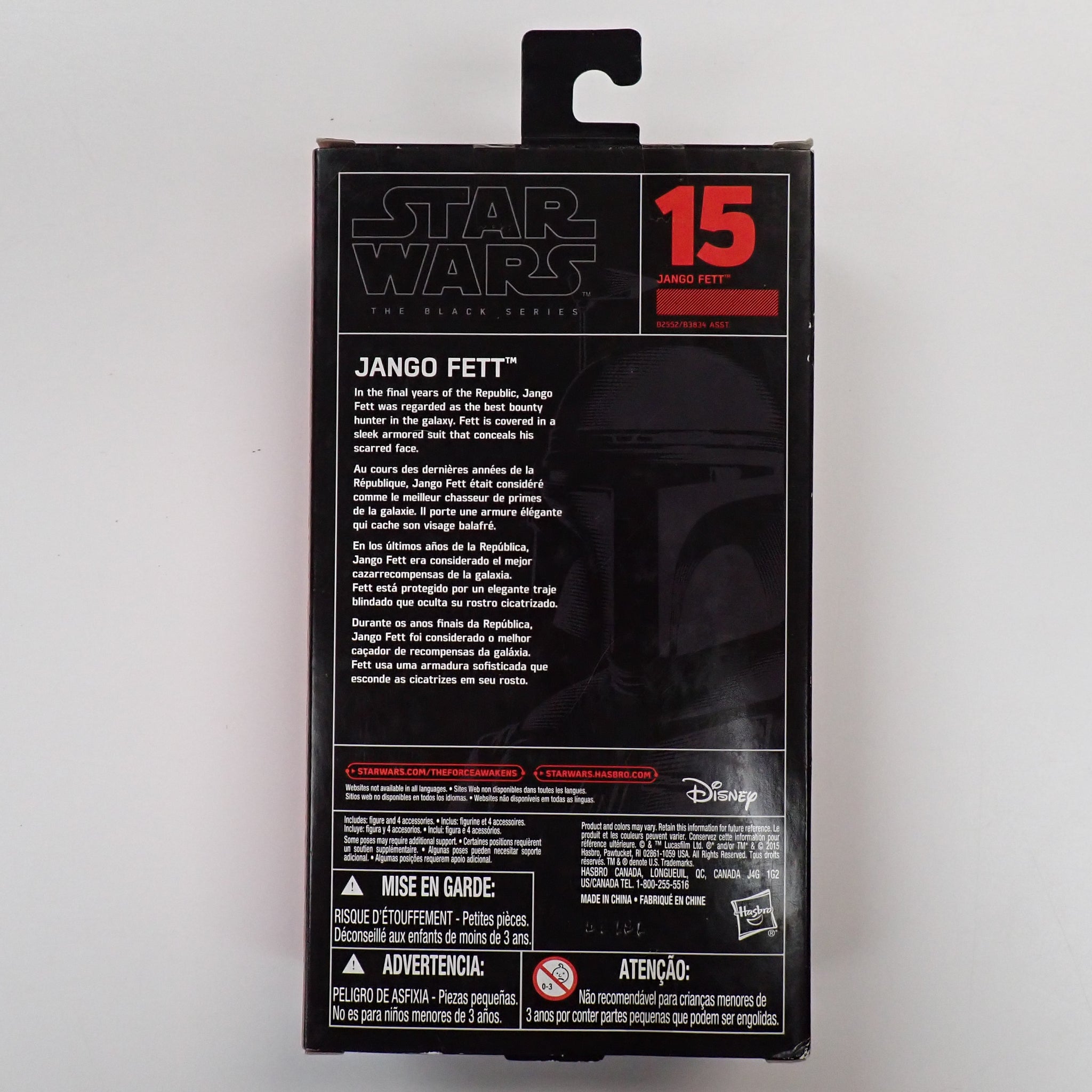 Sealed in box Black Series Jango Fett #15 from Star Wars. Produced by Hasbro in 2015.