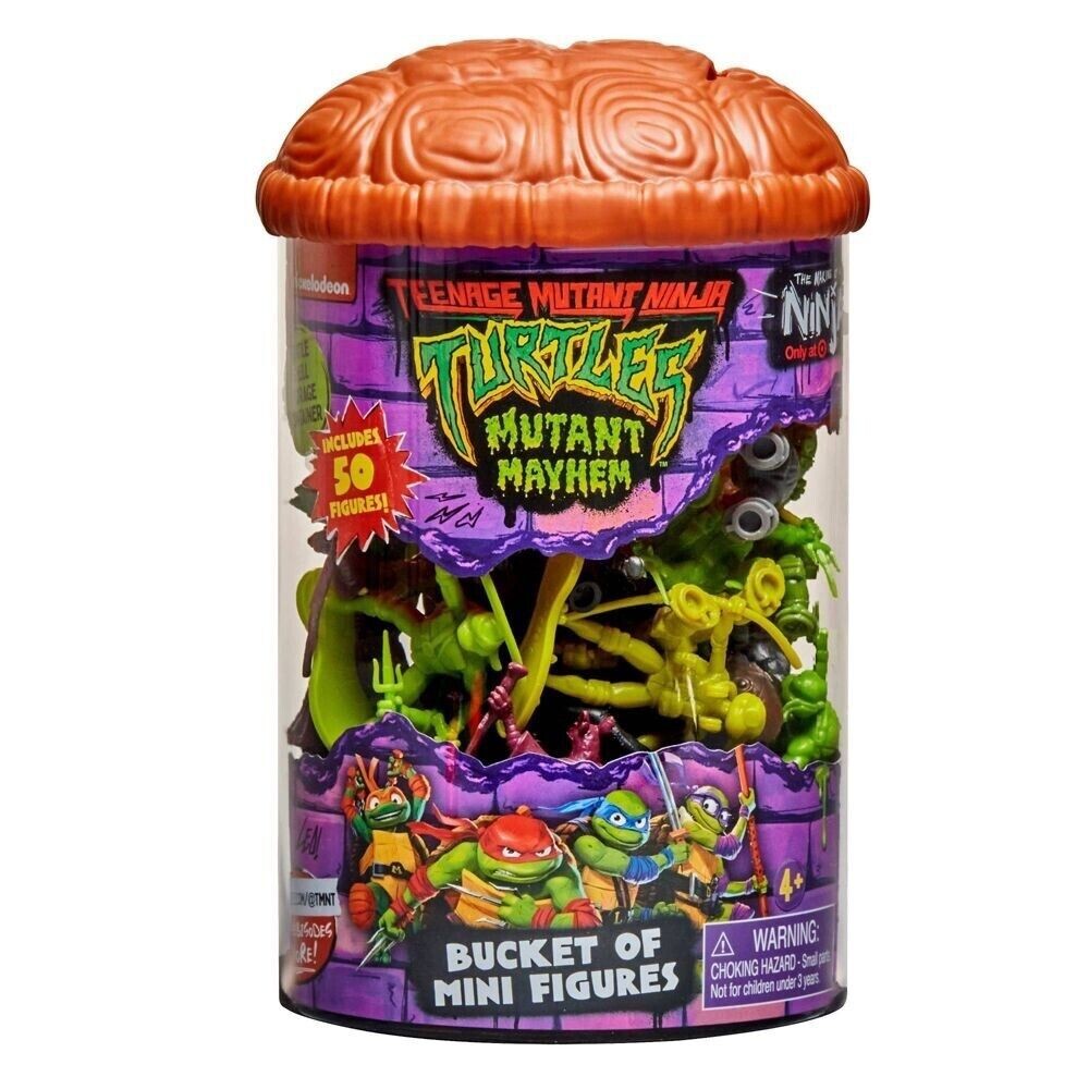 Teenage Mutant Ninja Turtles Mutant Mayhem Bucket of Mini Figures with 50 figures of 25 different characters from Mutant Mayhem AND the hit 2012 series!