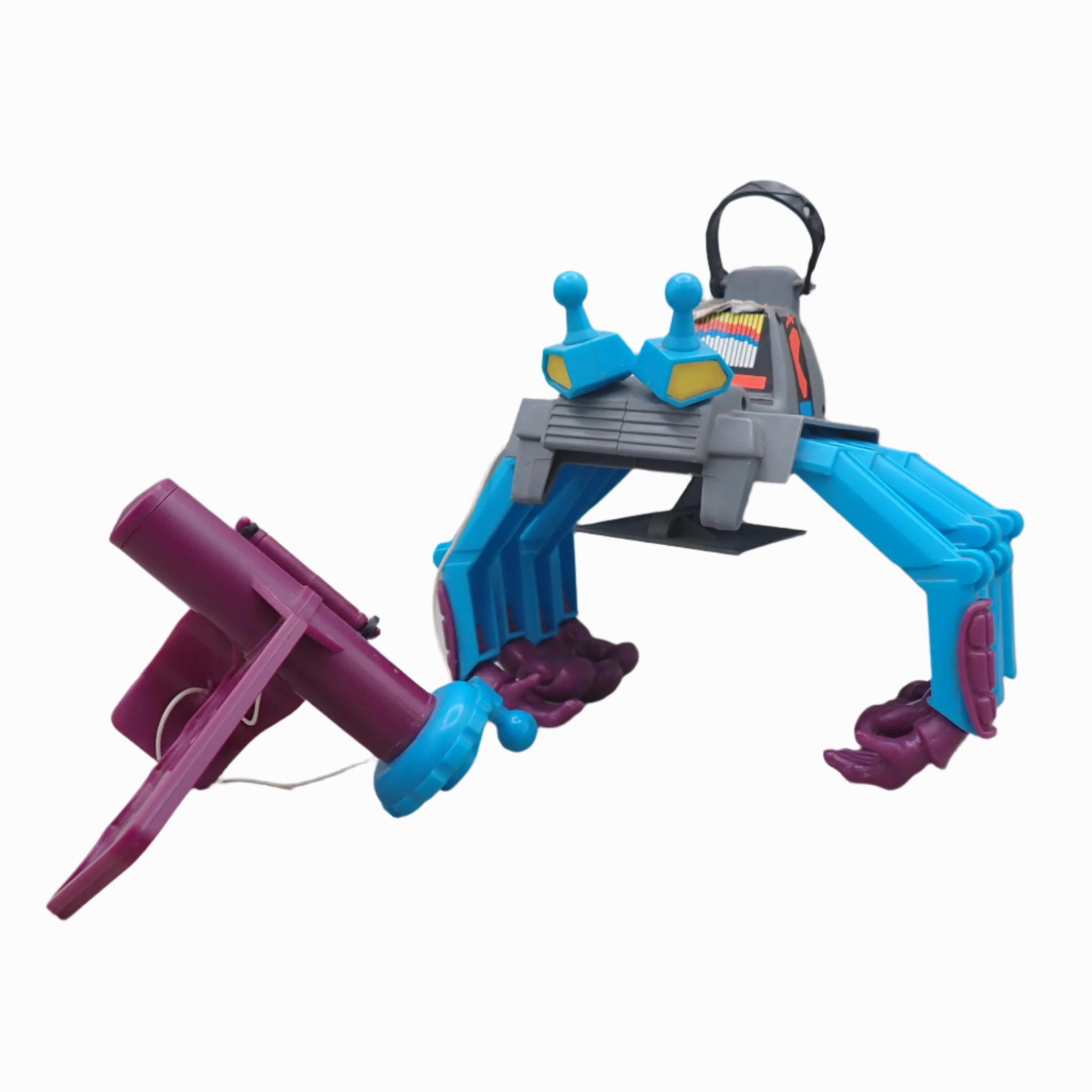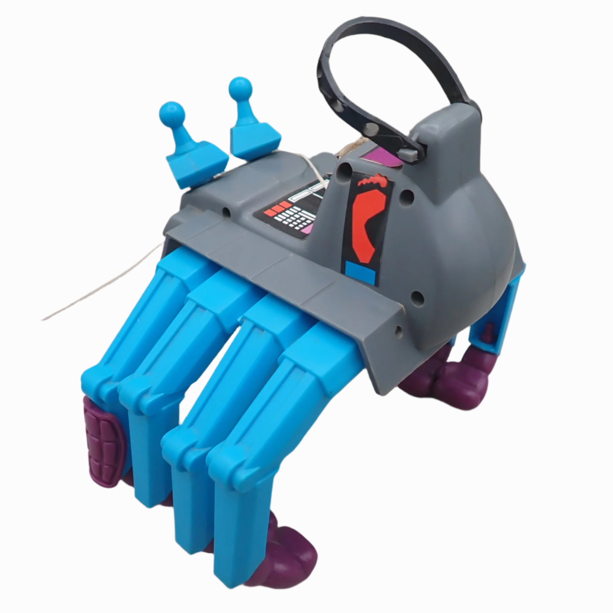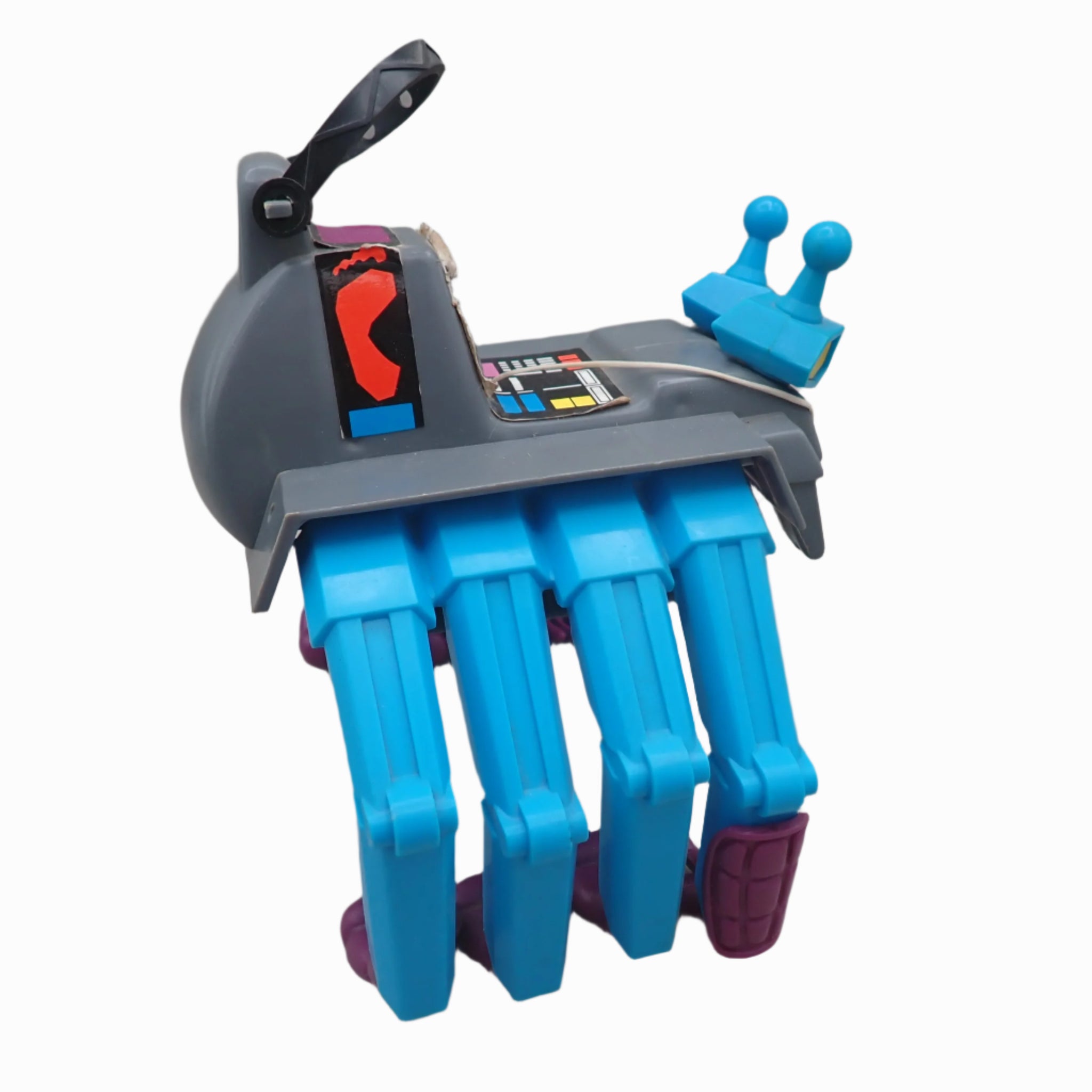 Has some signs of play, with peeling of the stickers and damage to the rubber. Otherwise is functional and in decent condition.