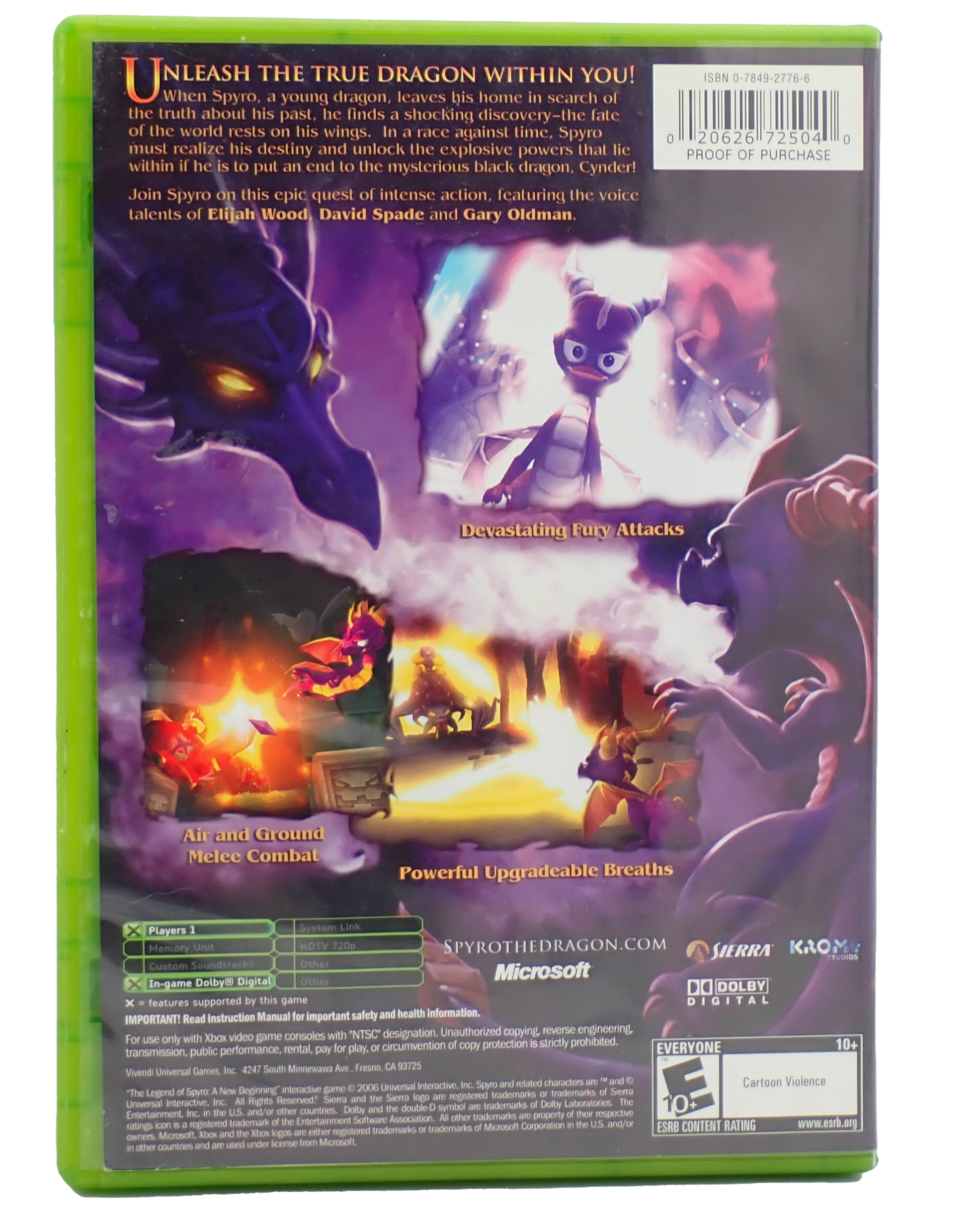 The Legend of Spyro: A New Beginning for XboxDeveloped by Krome StudiosReleased in 2006Rated E10+ Everyone 10+ (Cartoon Violence)