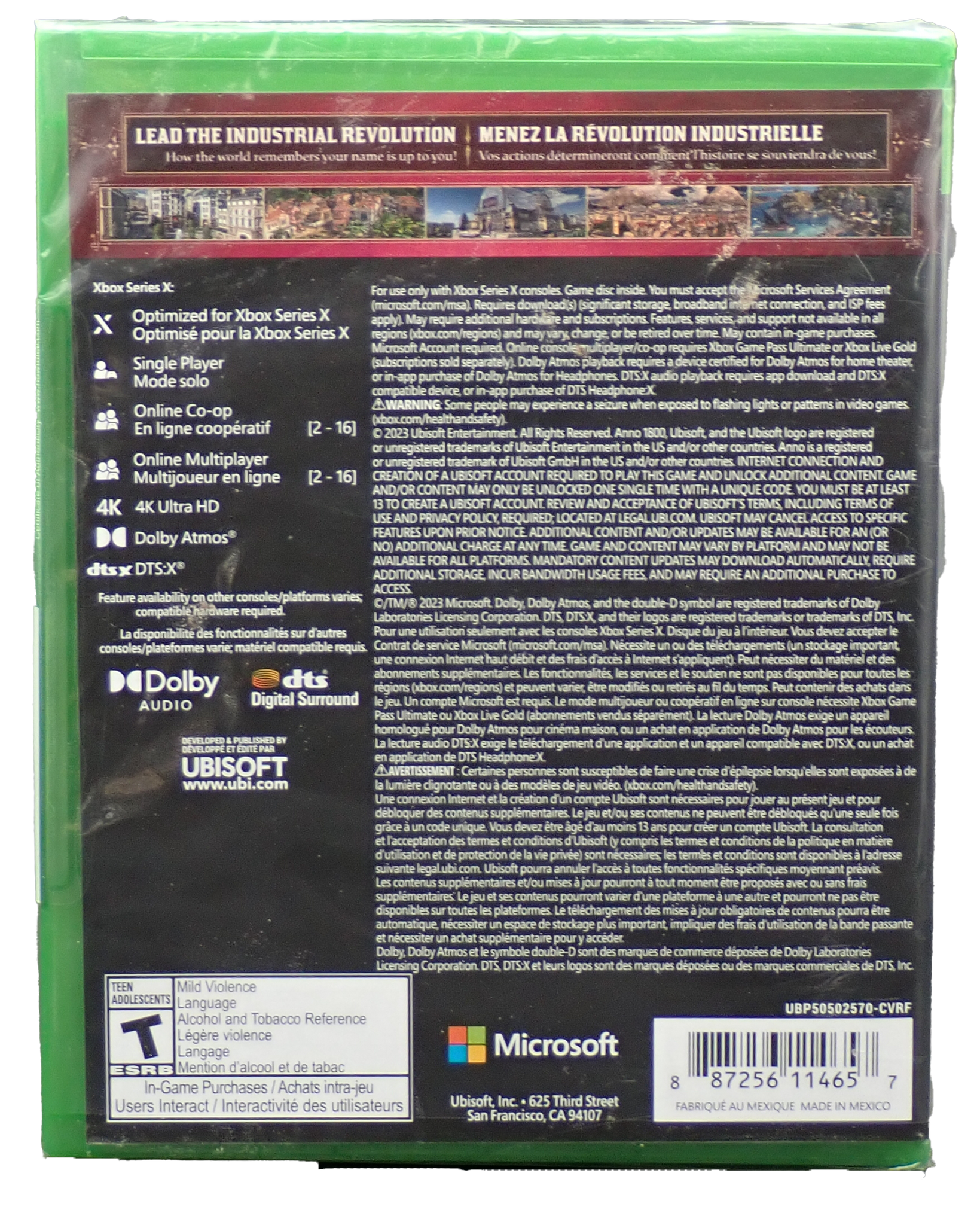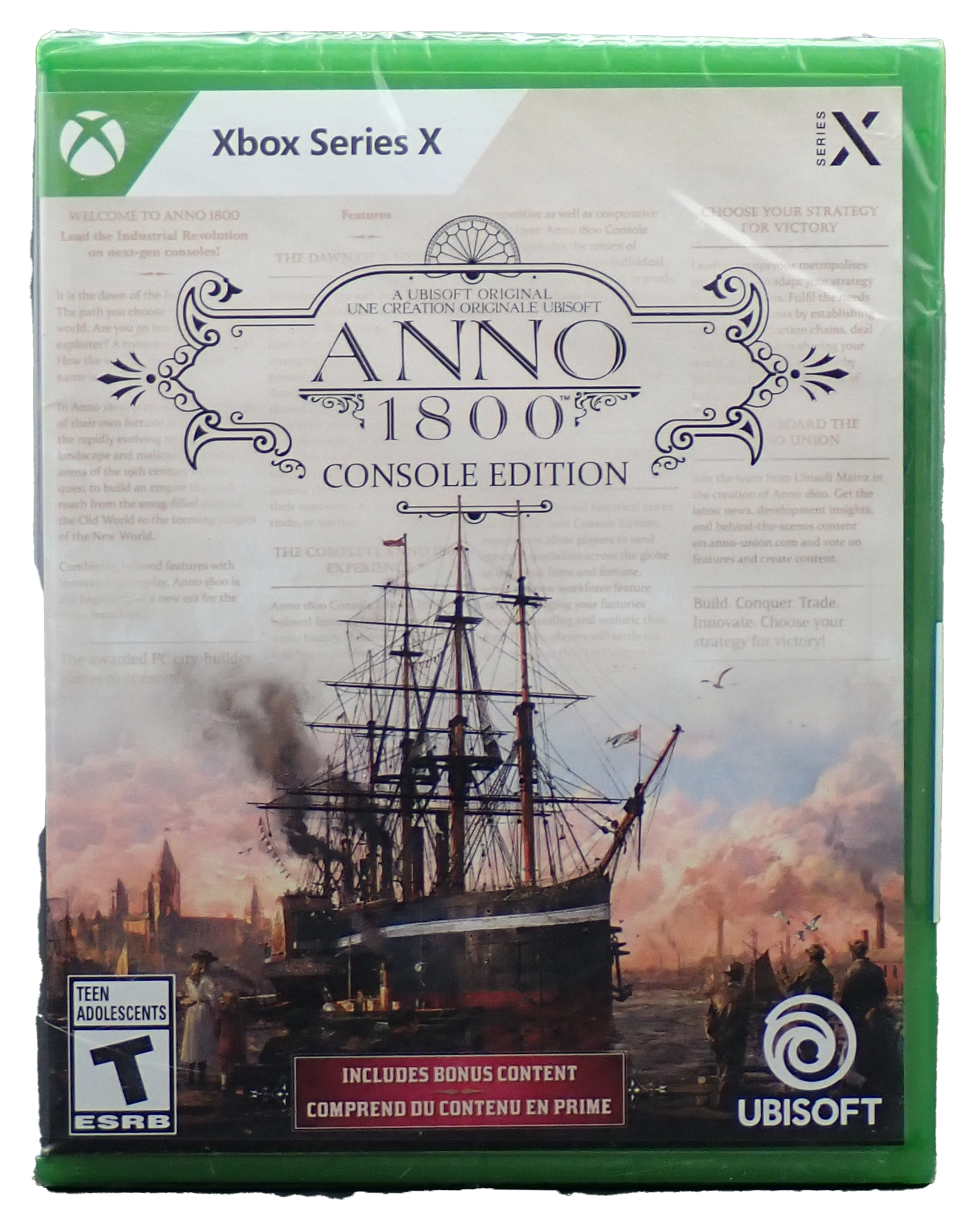 Sealed Anno 1800 for Xbox Series XDeveloped by UbisoftReleased in 2019Rated T for Teen (Mild Violence, Language, Alchol and Tobacco Reference)
