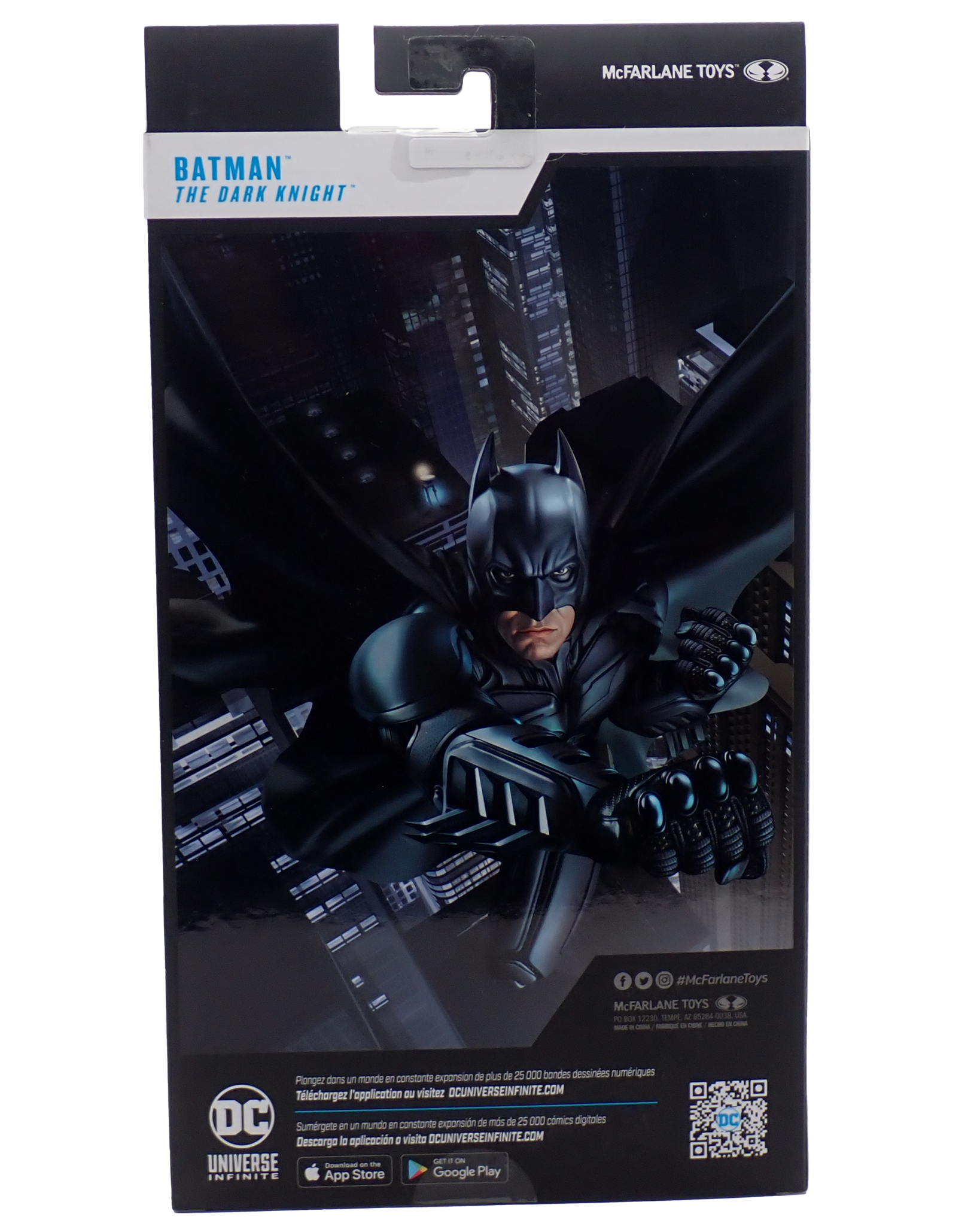 Sealed in box figure of Batman as he appears in The Dark Knight while sky diving in Hong Kong. Maybe.