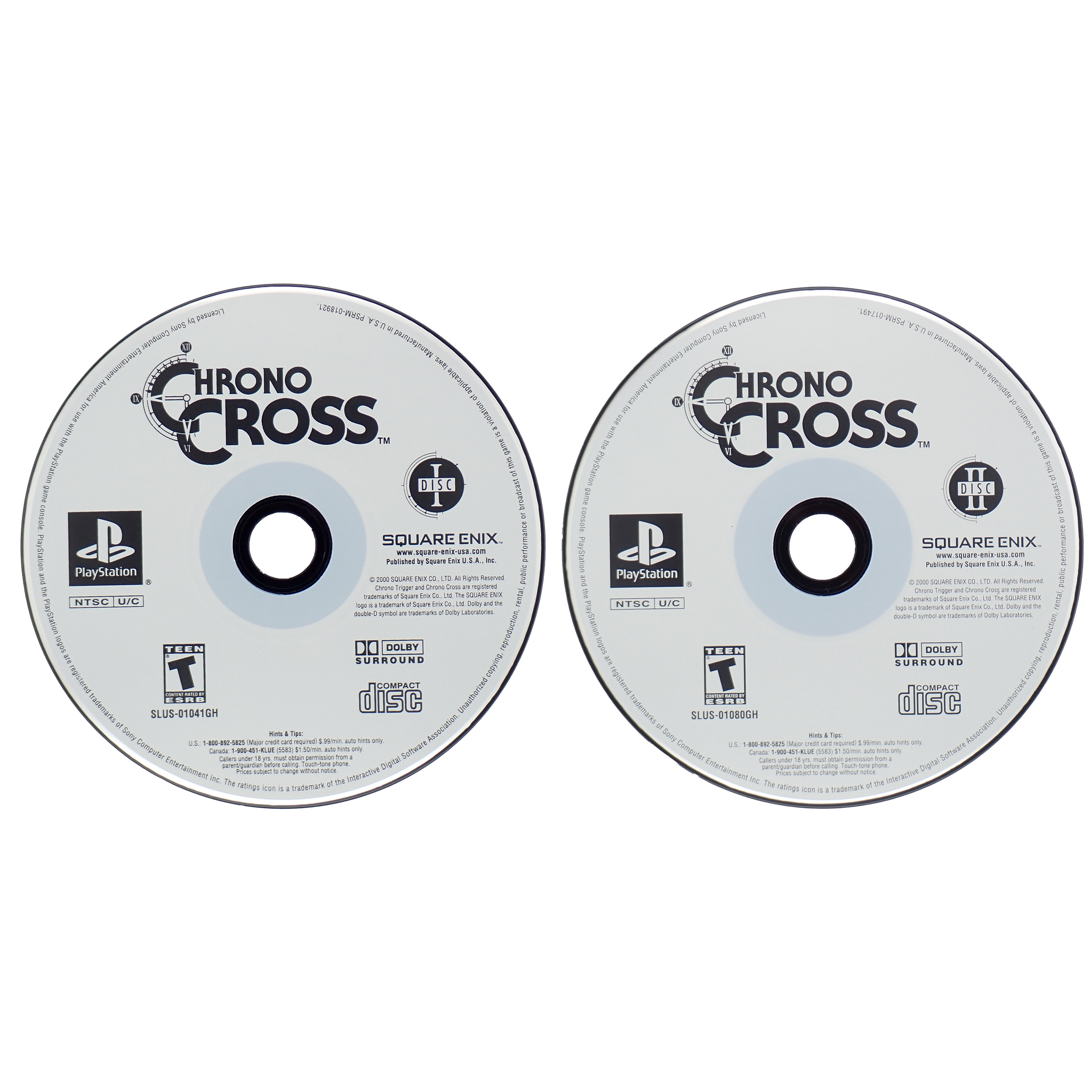 Loose 2 disc set of Chrono Cross for PlayStationDeveloped by Square EnixReleased in 1999Rated T for Teen (Animated Violence, Mild Language)