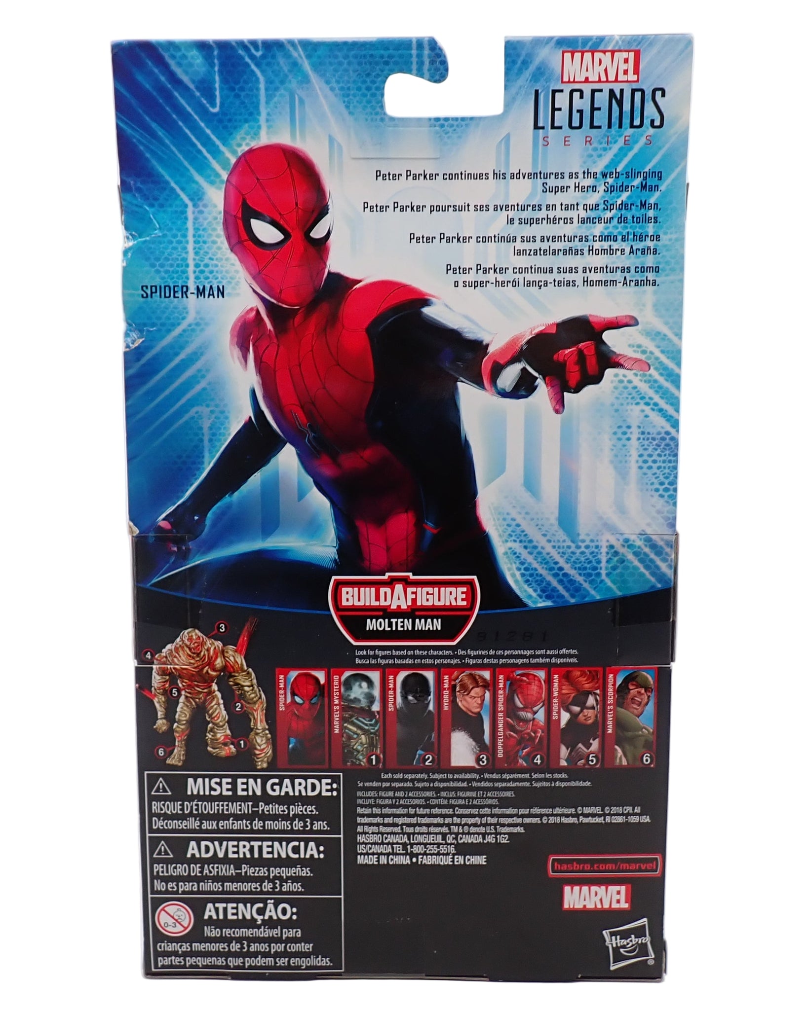 Hasbro Marvel Legends figure of Spider-Man from Spider-Man: Far From Home with Molten Man Build A Figure piece.