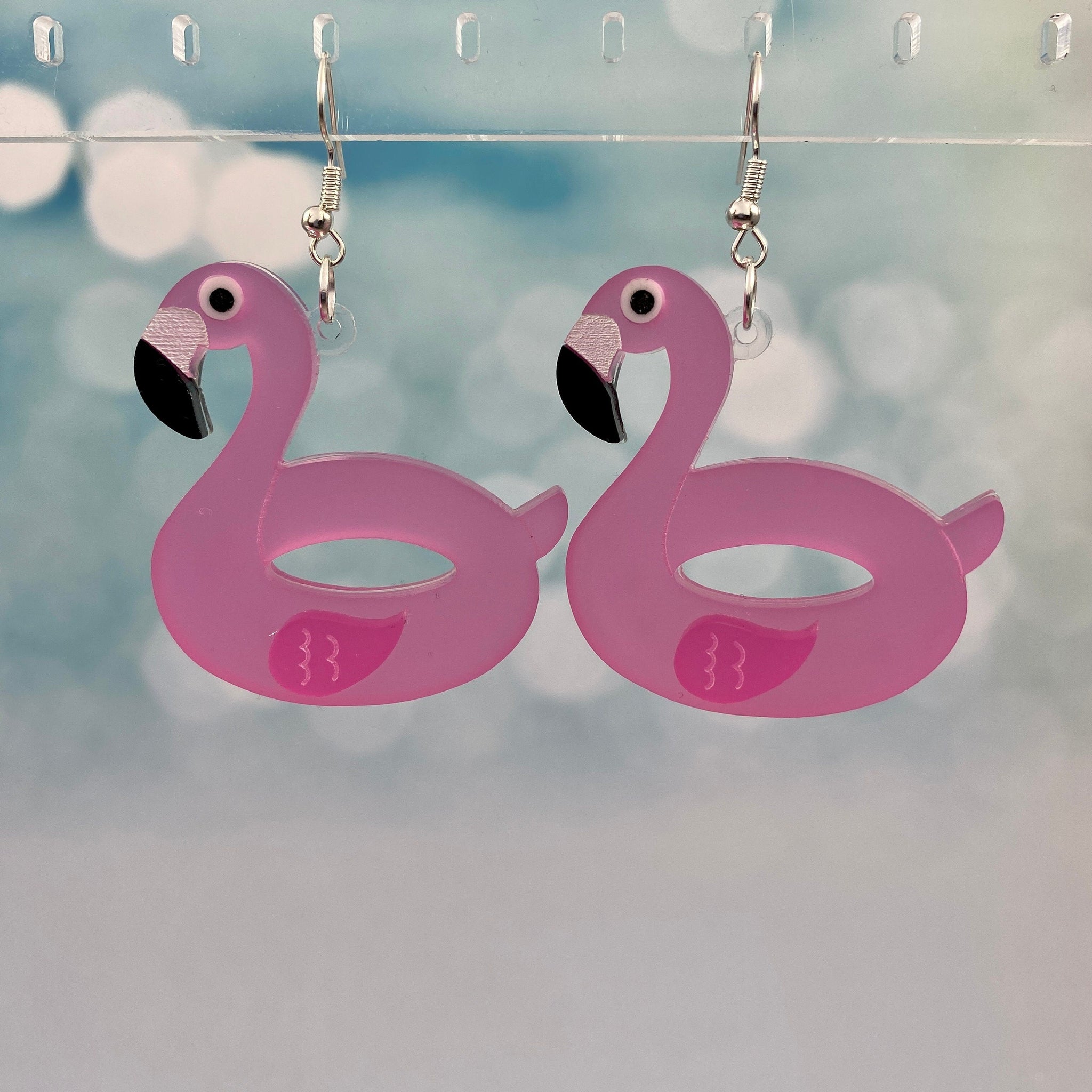 Flamingo Pool Float Dangle Earrings - Glitter Jelly Pink