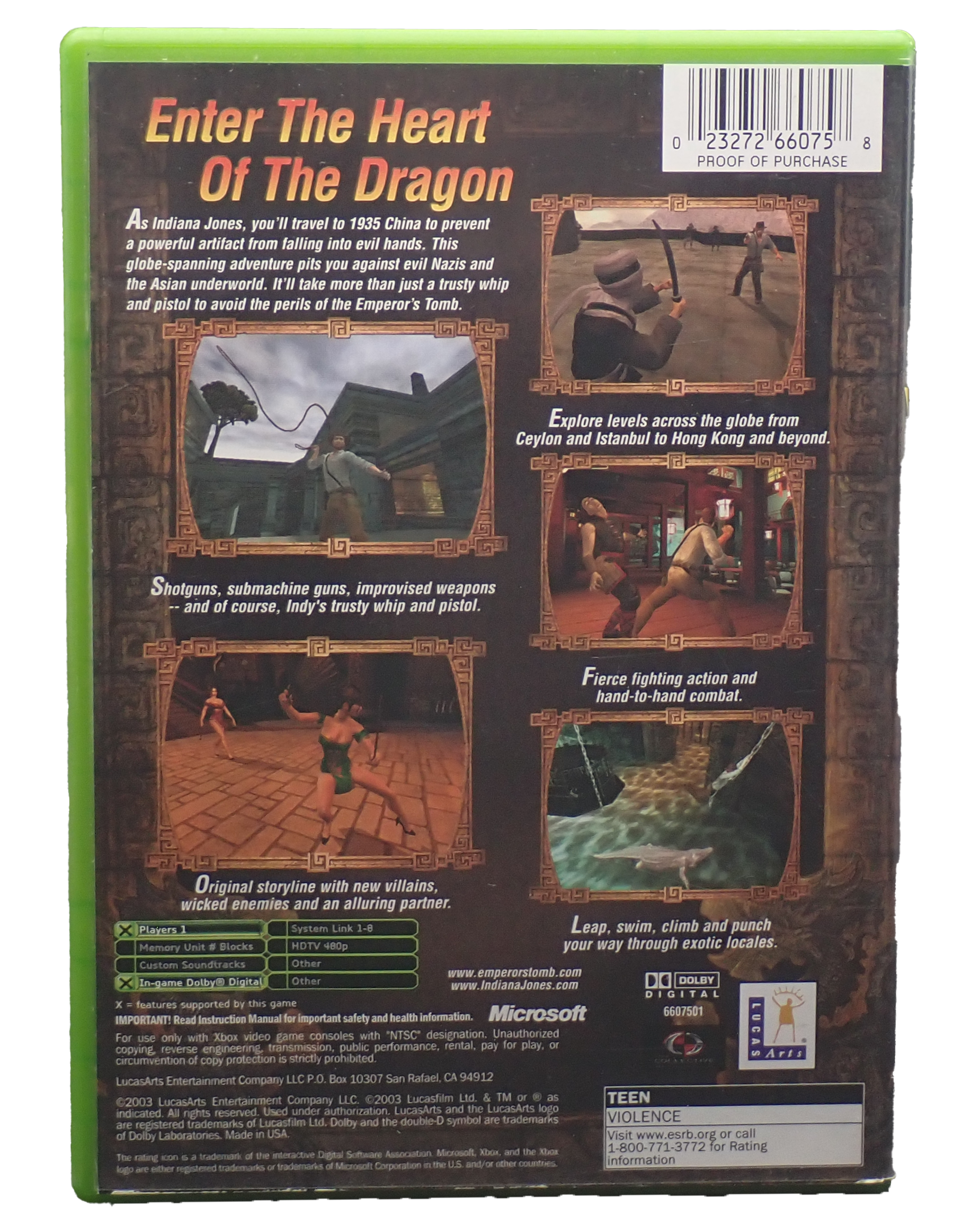 Indiana Jones and the Emeperor's Tomb for XboxDeveloped by The CollectiveReleased in 2003Rated T for Teen (Violence)