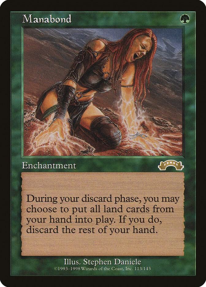 During your discard phase, you may choose to put all land cards from your hand into play. If you do, discard the rest of your hand.