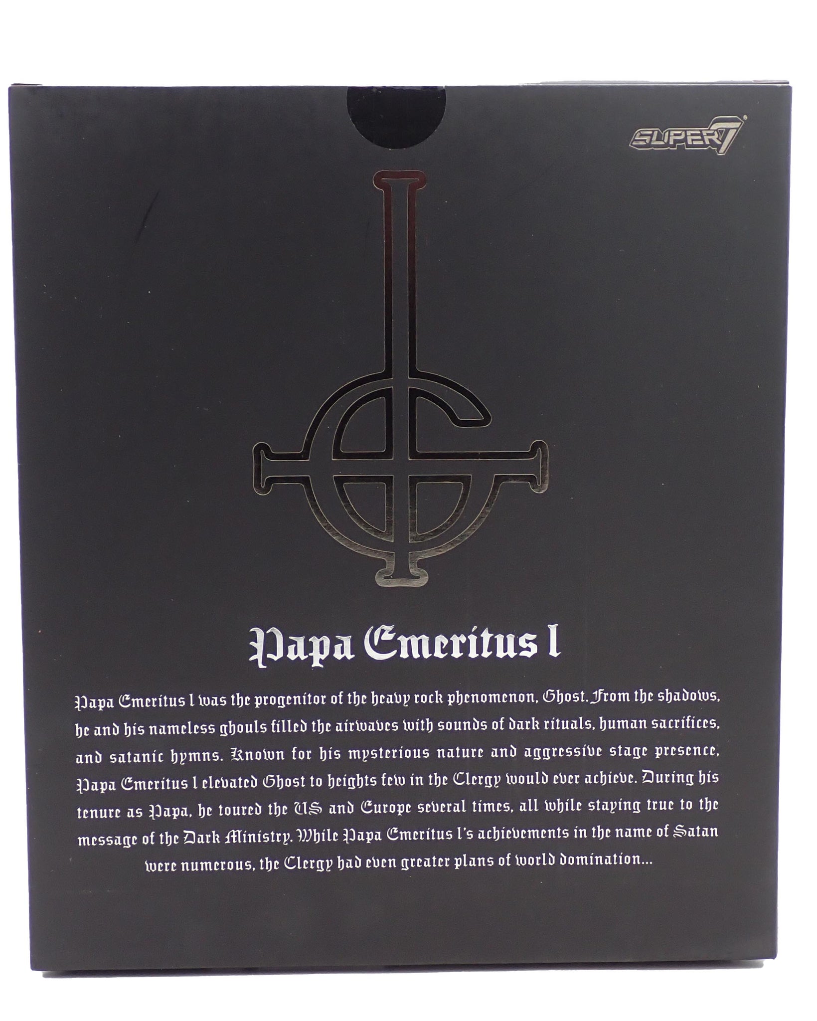 Sealed in box figure of Papa Emeritus I from Ghost.